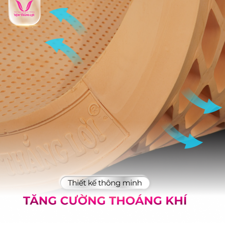- Nệm 100% Cao Su Thiên Nhiên Thắng Lợi SiSi – Advanced: Công nghệ khử mùi cao su, tích hợp chống đau lưng