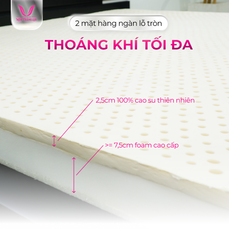 - Cấu trúc lỗ thoáng khí giúp tăng cường khả năng lưu thông không khí, tạo cảm giác mát mẻ khi ngủ